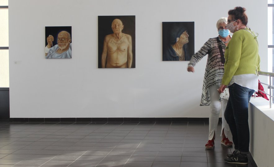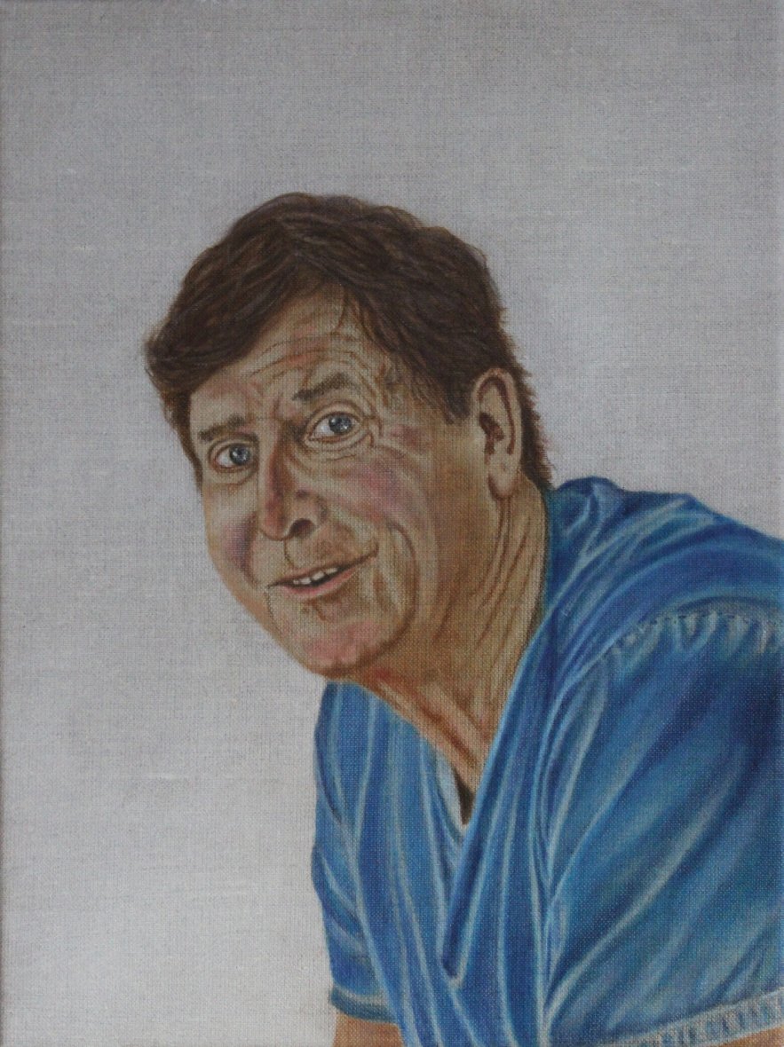 Die Bildnisse sind über den Zeitraum von einem Jahr entstanden. Annika van Vugt aber malt erst seit etwa zwei Jahren. 1983 geboren schloss sie ihr Studium in Erziehungswissenschaften ab. Sie hat sich die figürliche Malerei von der Pike an selbst beigebracht. Mit jedem neuen Bild ergab sich eine neue Erkenntnis, sowohl malerisch als auch auf die dargestellte Person bezogen. Das erklärt den Unterschied zwischen den Bildern.