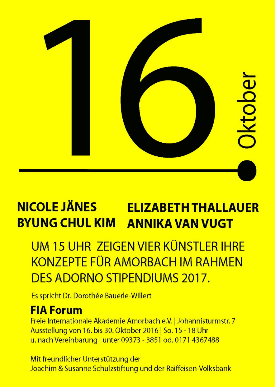 Angelika Arendt / Heike Kati Barath / Peter Böhnisch / Caro Bittermann / Conni Brintzinger / Peter Duka / Tom Dzieran / Die Weissenhofer: Matthias Beckmann, Jörg Mandernach, Uwe Schäfer / Tim Ernst / Tom Früchtl / Crislogo Furtado / Sabine Gross / Sebastian Gögel / Florian Haas / Bernhard Härtte / Margarete Hahner / Heike Hamann / Gabi Hamm / Paule Hammer / Stef Heidhues / Vanessa Henn / Irène Hug / Nico Ihlein / John Isaacs / Susanne Jung / Michael Kalmbach / Stefan Kaminski / Isabel Kerkermeier / Katia Kelm / Heike Kelter / Julia Kissina / Karen Koltermann / Svenja Kreh / Dirk Lebahn / Marko Lehanka / Nikolaus List / Catherine Lorent / Isa Melsheimer / Iris Musolf / Julia Oschatz / Nicole van den Plas / Katrin Plavcak / Livia Polidoro / Thomas Ravens / Gunnar Reski / Stefan Rinck / Agnes Rosse / Fred Rubin / Christoph Ruckhäberle / Manfred Schneider / Veronika Schumacher / Michael Schultze /Ulrika Segerberg / Heidi Sill / Martin Städeli / Ernst Stark / Tine Steen / Marc Soisson / Astrid Stricker / Caro Suerkemper /Alex Tennigkeit / Pierre Tilman / Rebecca Thomas / Peter Torp / Kata Unger / Annika van Vugt / Albert Weiss / Martin Wellmer / MajaWeyermann / Andrea Wilks / Stephen Wilks / Barbara Wille