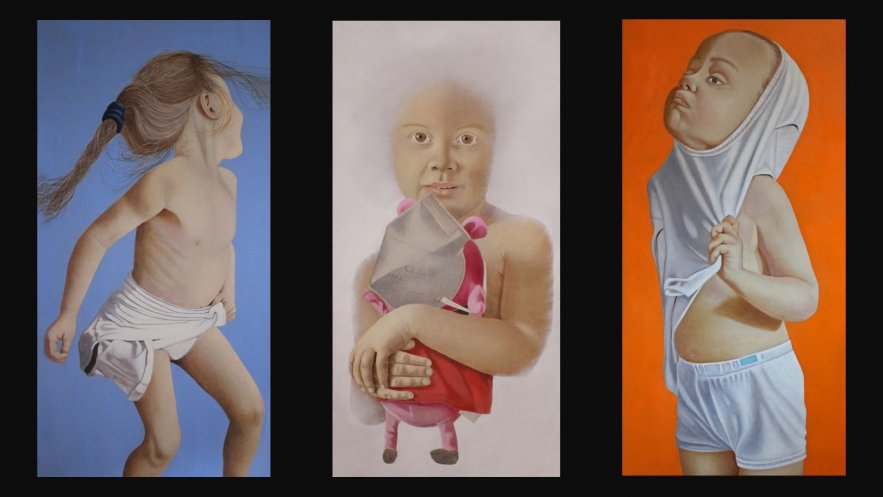 "Pandemiekinder" 2022, oil on canvas, 120 x 60cm, Annika van Vugt