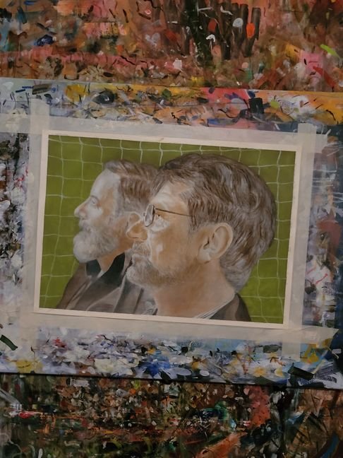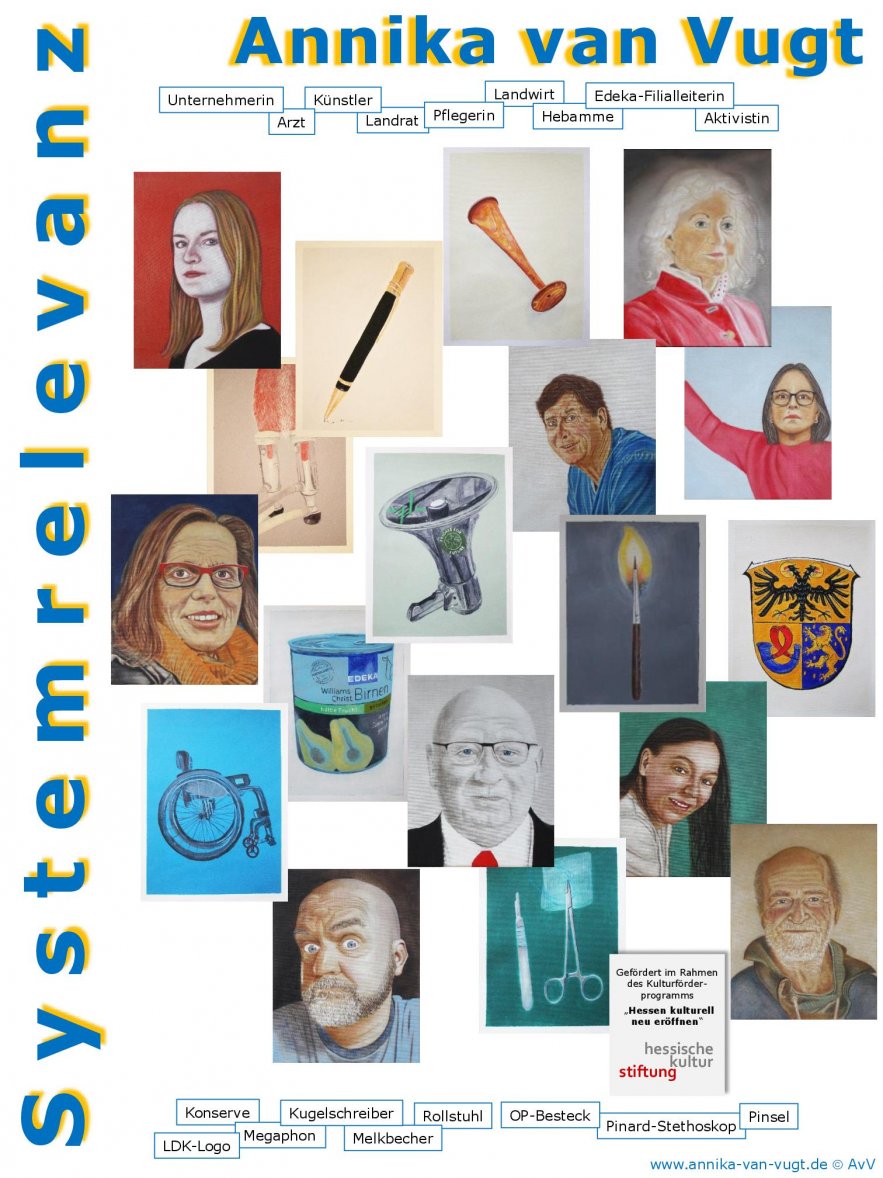Dieses Portrait des Chirurgen Dr. med. A. Pschaick wurde von Annika van Vugt - im Rahmen ihres von der hessischen Kulturstiftung geförderten Projektes zum Thema Systemrelevanz - angefertigt. Van Vugt malt verschiedene Persönlichkeiten mit systemrelevanten Berufen/ Berufungen aus ihrem Umfeld und ihrer persönlichen Perspektive. Komplementär dazu fertigt sie zu jedem einzelnen Portrait Gegenstände an, die die Berufe symbolisieren. Alle Bilder sollen als Gesamtkunstwerk nach einer Besserung der pandemischen Lage in einer Schau präsentiert werden. Zu Beginn ihres Projektes dachte Annika augenblicklich daran Dr. Pschaick zu malen, da sie und ihre gesamte Familie, sehr gute Erfahrung mit ihm als Arzt gemacht hatten.