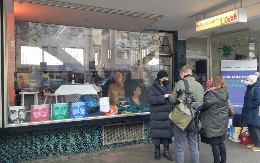 "Volker Bradke" - Eine audiovisuelle Installation von Annika van Vugt im Kulturlabor auf der Kultur Pop-Up Bühne des Vereins Kulturzeiter*in e.V. in der Frankfurter Innenstadt (Dezember 2021).