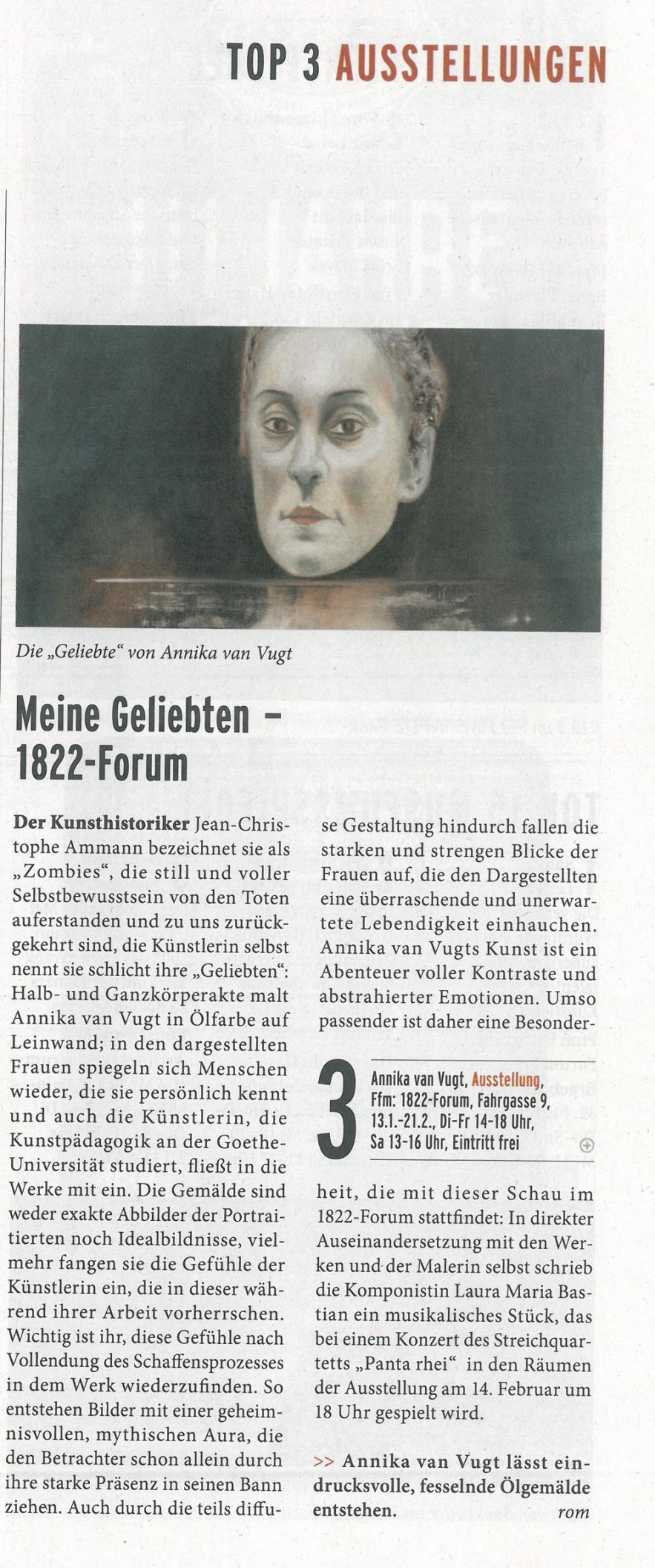 "Annika van Vugt: »Meine Geliebten« im Frankfurter 1822-Forum"